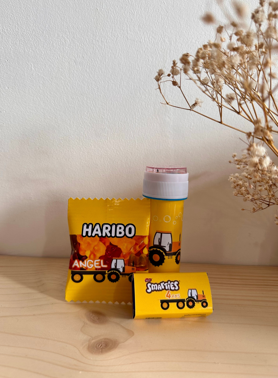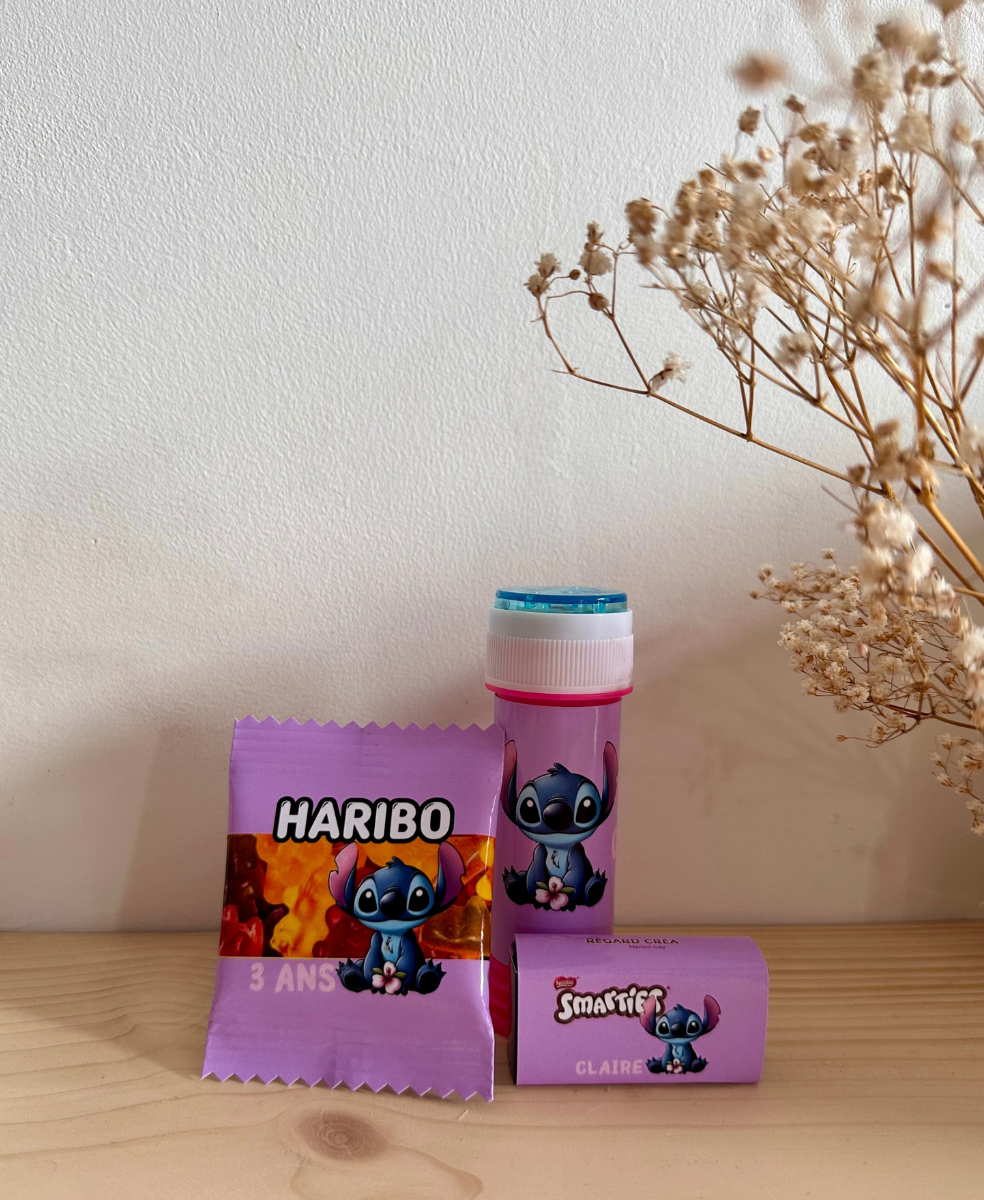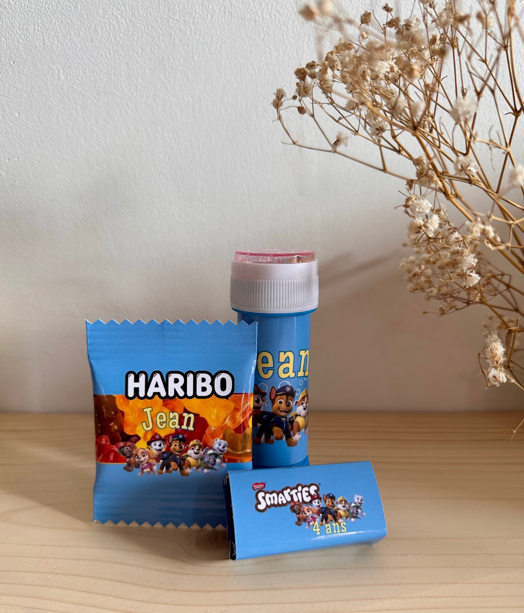 Lot : 1 Haribo mini, 1 Smarties, 1 tube de bulles